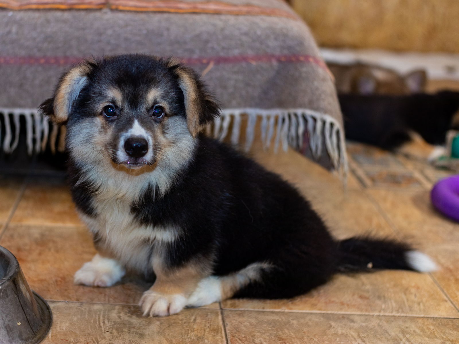 Дівчинка соболиного окрасу, флафі. Еля – казкове створіння, наче ельф поміж собак. Вона успадкувала від мами гарний формат, з довгою грудною клітиною та крупом, компактним попереком, а також довгу шию високого виходу. Вся ця елегантна тілобудова вдягнена в шикарну «флафину» шубку, та ще й соболину, як в татка – коли окрас остаточно профарбується, будуть неймовірні переливи всіх відтінків меду. А з пишного хутра визирає миловидне личко. Також успадкувала від мами й зважений темперамент, але якщо Діттані – рівно дружелюбна, то Елі – суцільна ніжність. Дуже лагідна, м’якої вдачі, собачка – затишок.