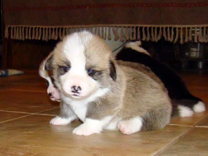 На этих фотографиях щенок вельш корги пемброка, одна из четырех девочка из помета "С" (английское Си), которые, похоже, взяли от своих родителей лучшее, что у них было в экстерьере - прекрасную голову, длинную шею, красивую шерсть отца и крепкий костяк и объем мамы. Но самое главное, как и оба их родителя, они вселые, сообразительные и уверенные в себе овчарки, какими и должны быть вельш корги пемброки.